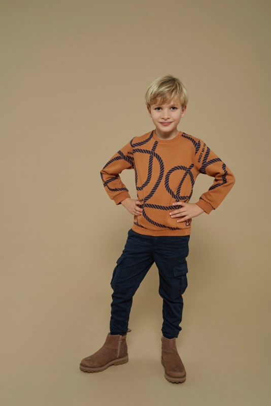 Sturdy sweater aop hazelnoot Waves and Whales